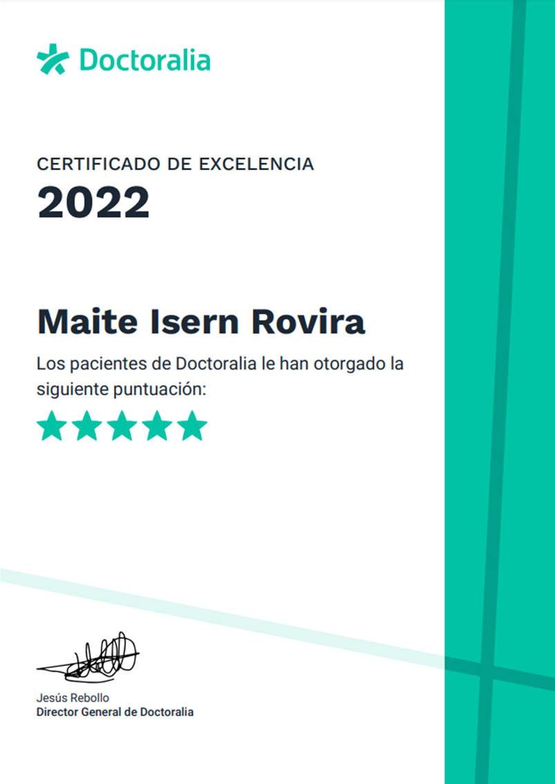 Sóc Maite Isern, Psicòloga Sanitària a Terrassa, COPC 18727 Consulta Autoritzada pel Departament de Salut de la Generalitat de Catalunya E08609748 Aquest codi, garanteix el compliment dels requisits necessaris i seguretat exigida per aquest departament.